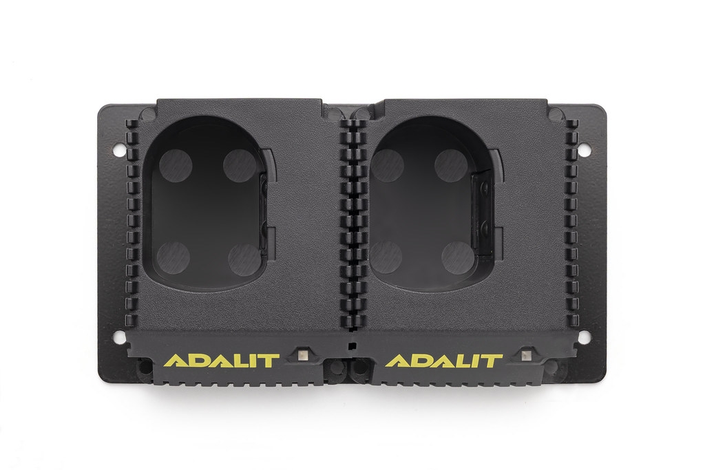 Dubbele voertuiglader (12/24 V) voor 2 Adalit L-4000 (en L-3000). Ideaal voor voertuigen die twee lampen gelijktijdig moeten laden.